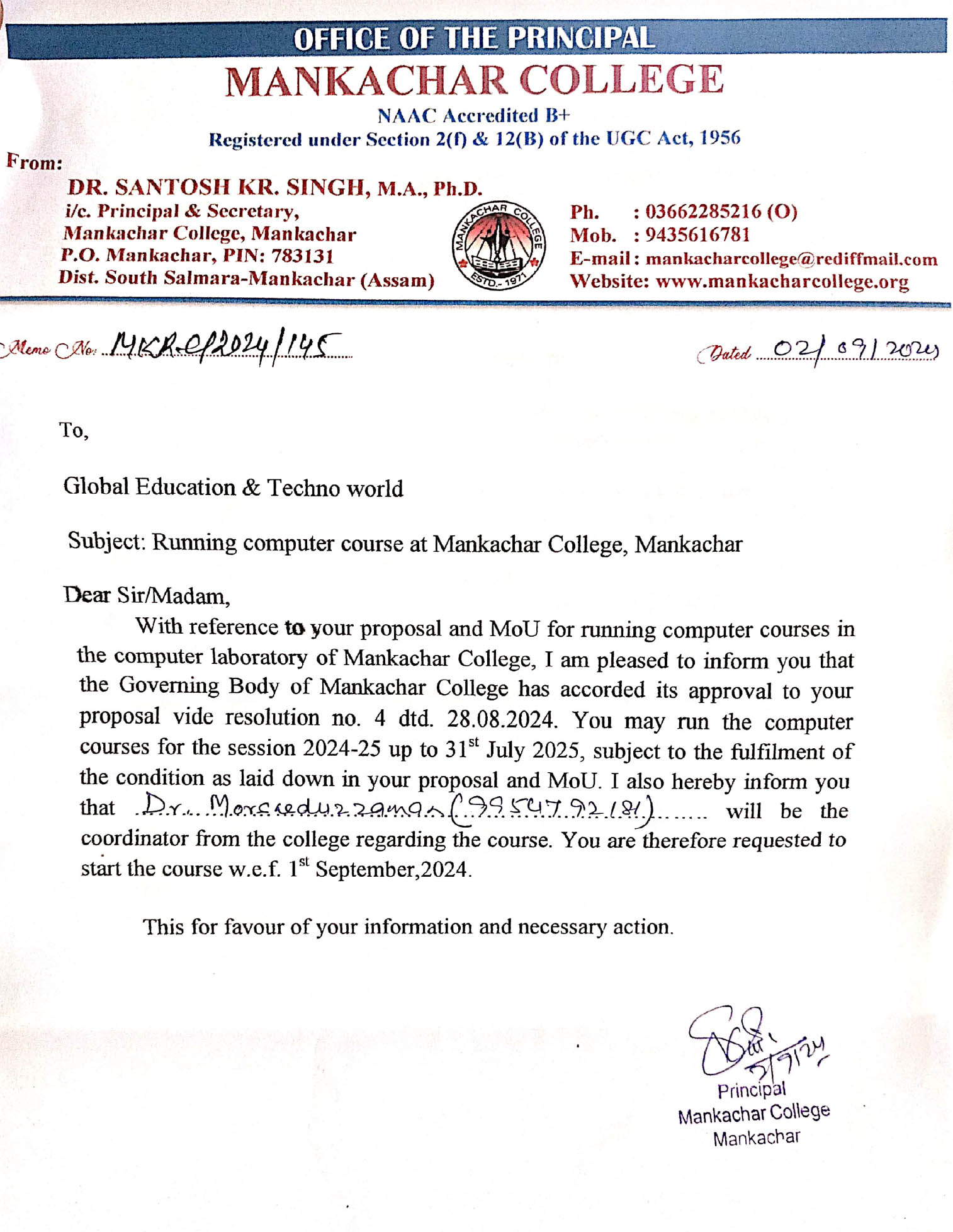 We are registerd thorugh Govt of India Act 1860 and 1882. We are also affiliated with many Govt of India Authorities. i.e MHRD, MSDE, PMGDISHA, NIELIT etc and our certification is accepted all over india for various govt; and private jobs